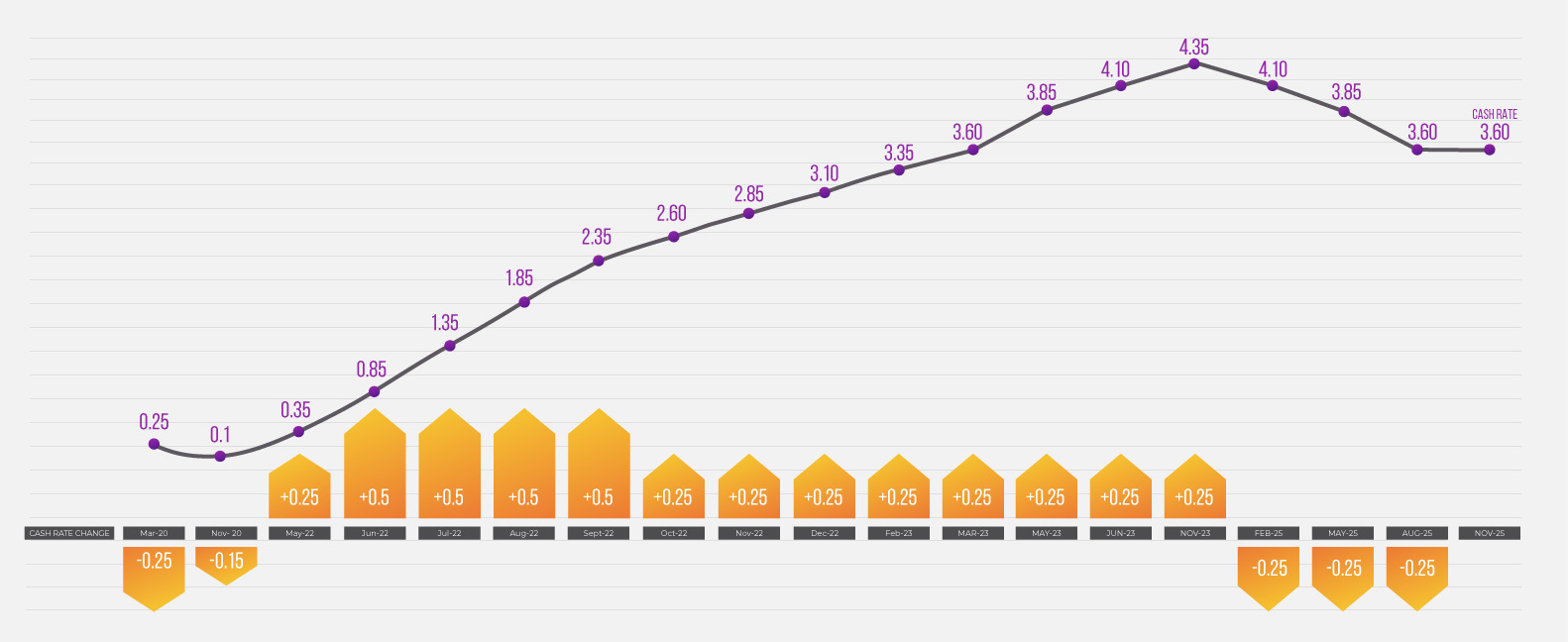 In the latest Reserve Bank of Australia (RBA) meeting on Tuesday, the 4th of November, 2025, the RBA maintained the cash rate at 3.60%.